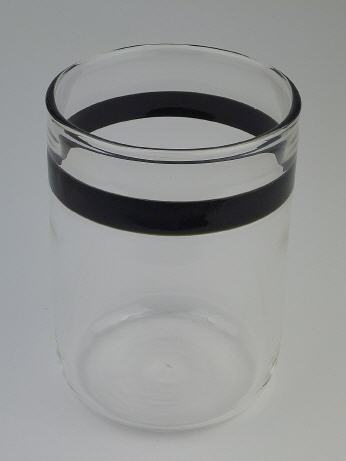 Durch Verwendung einer speziellen Technik handelt es sich im Gegensatz zu "normalen" Farbbändern hier nicht um eine oberflächliche Auflage, sondern um einen durchgefärbten Ring. Die thermische Bearbeitung verändert hier vor allem die Glasoberfläche. Das opake Glas erscheint außen relativ matt und "urtümlich", im Innern dagegen scheint das Glas poliert zu sein.
